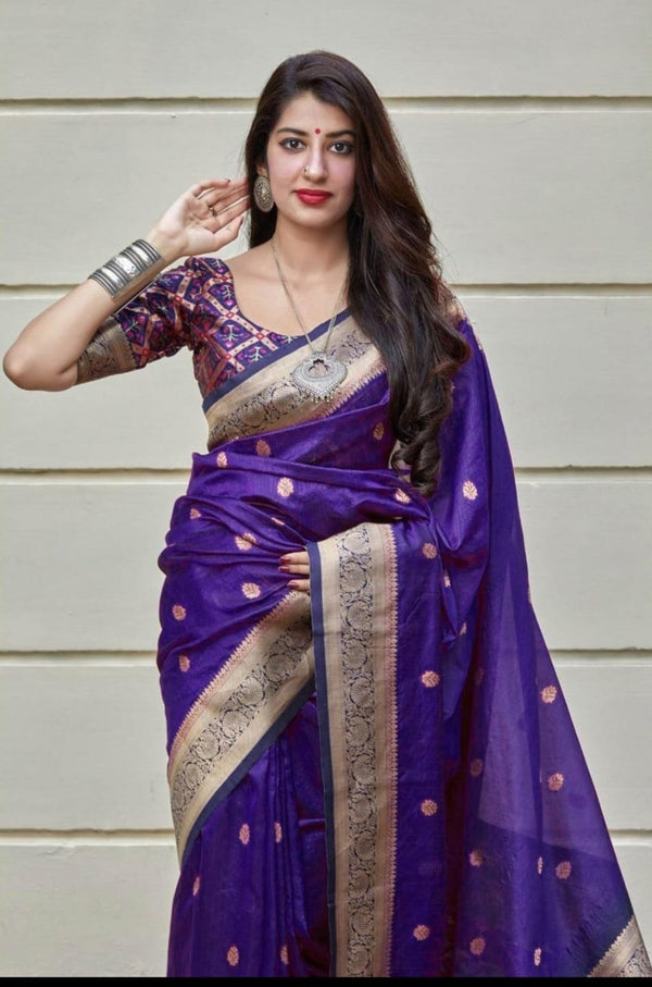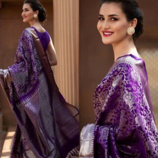 Tremendous Purple Soft Banarasi Silk Saree With Supernal Blouse Piece