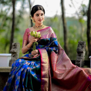 The Silk Women’s Shiny Sapphir Soft Silk Desginer Banarasi Saree with 0.80 m Attached Blouse