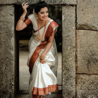 The Silk Womens White & Red Palkhi Archaic Traditional Kanchi Soft Silk Saree with Attached Blouse