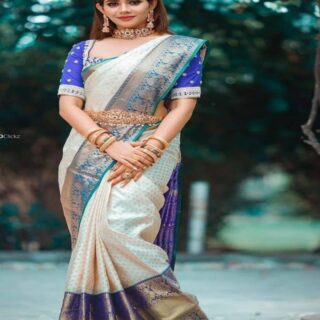 The Silk Women’s Gorgeous White with Blue color Soft Silk Party Wear Saree with 0.80 m Attached blouse