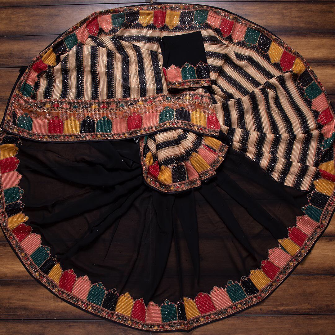 Attractive Black And Multi Color Silk Saree With Lovely Blouse Piece