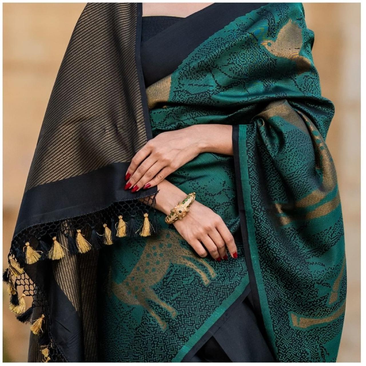 Deserving Rama Soft Banarasi Silk Saree With Beautiful Blouse Piece