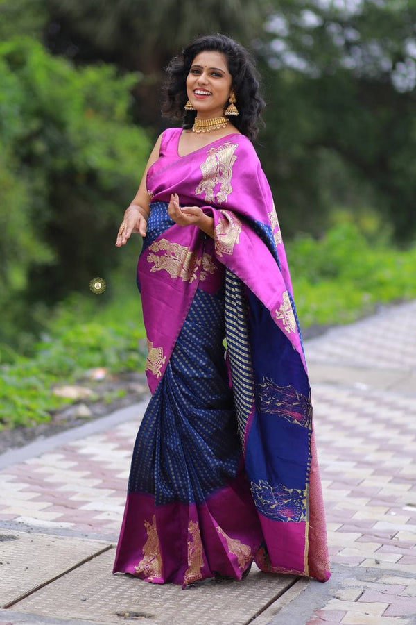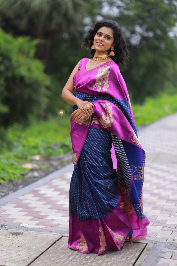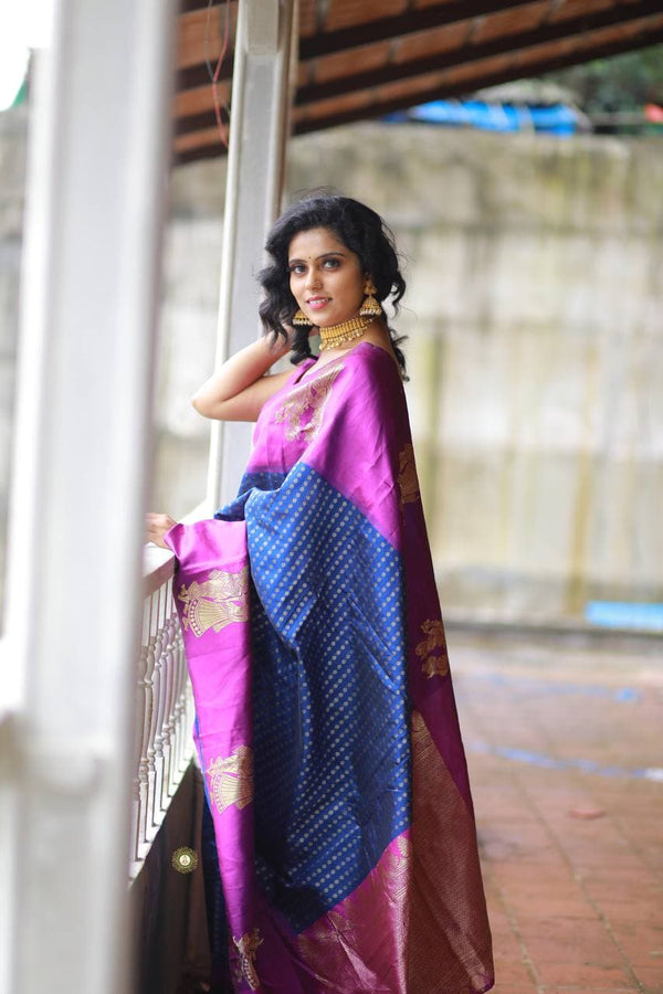 The Silk Women’s Soft Silk Saree in Appealing Blue Color With 0.80m Attached Unstitched Blouse